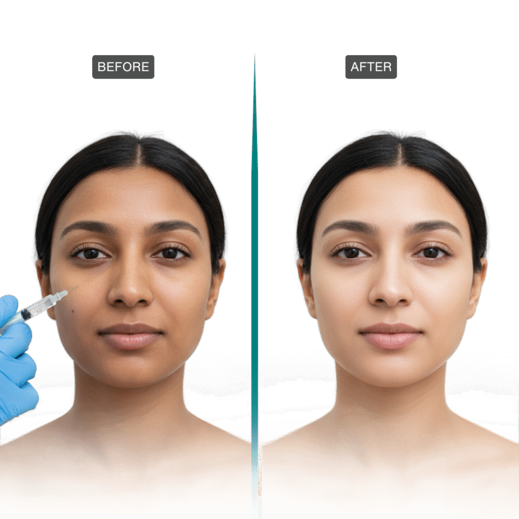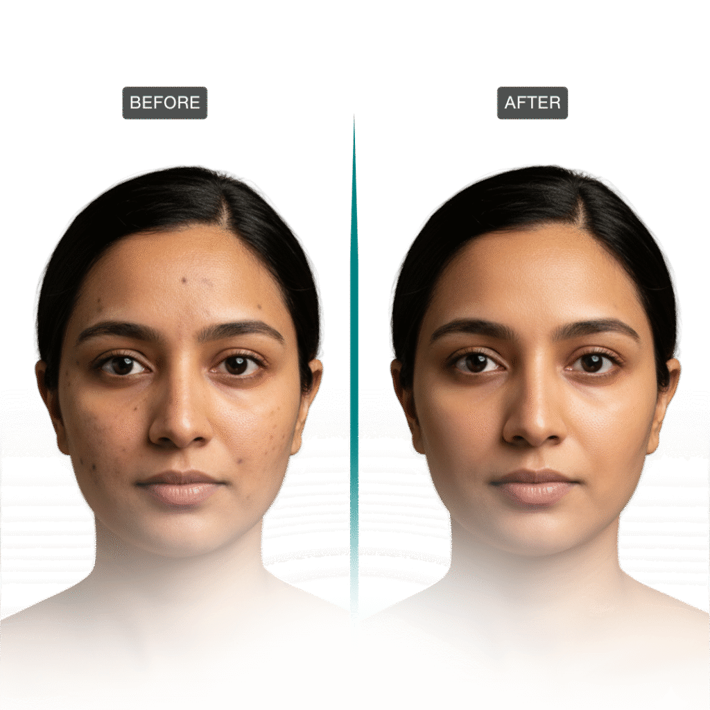 The result is a naturally bright and refreshed complexion, achieved safely under medical supervision without harsh bleaching or irritation.